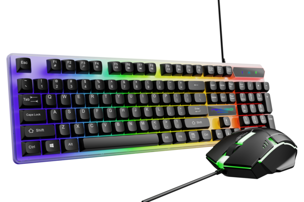 لوحة مفاتيح سلكية باضاءة خلفية و فأرة مضيئة - مجموعة العاب