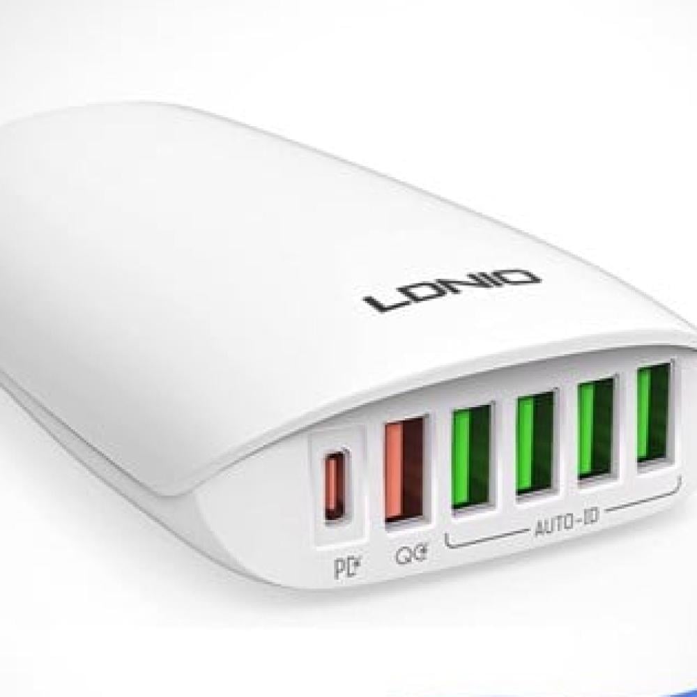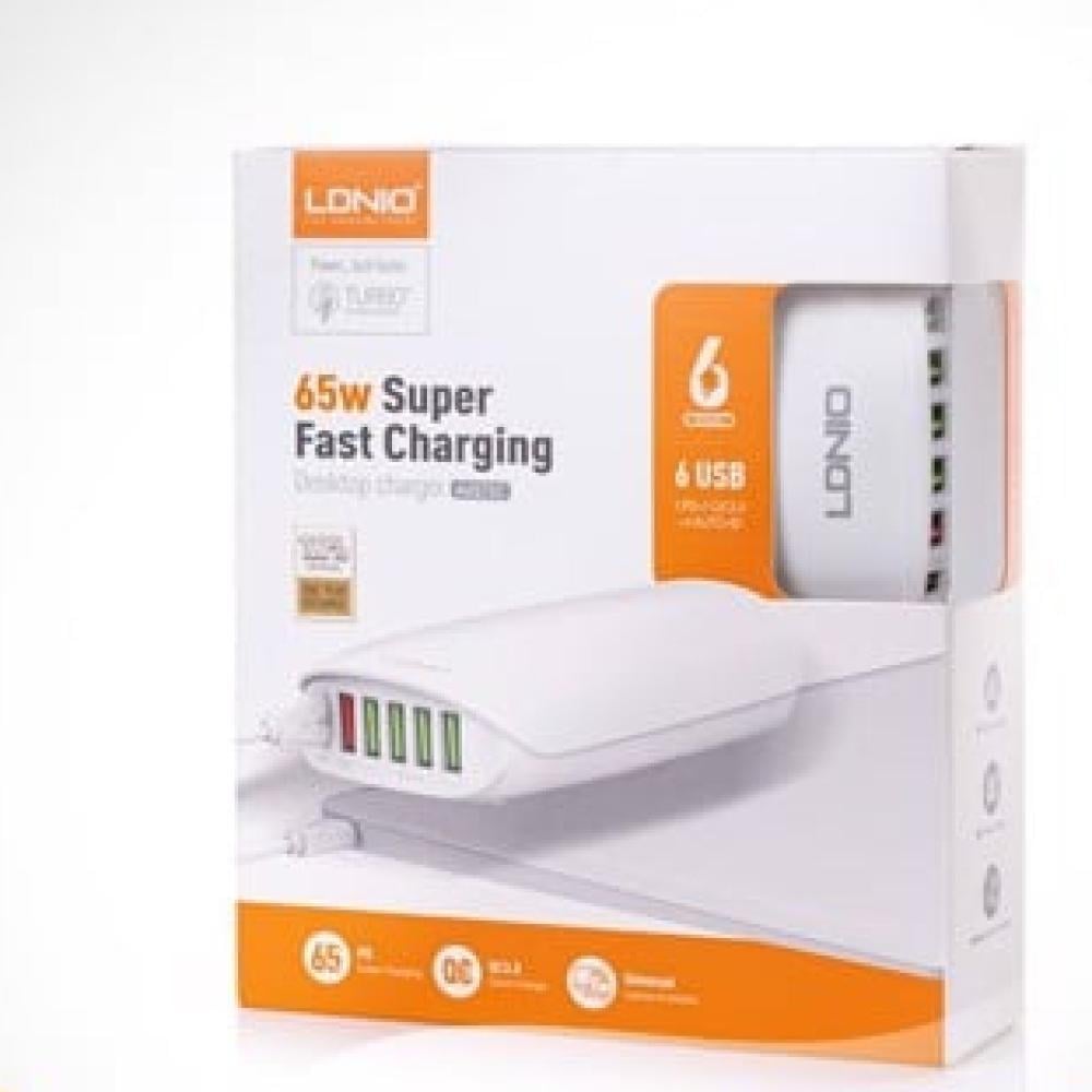 منصة شحن LDNIO A6573C مع 6 منافذ USB للشحن السريع بقوة 65 واط مع 9 وسائل حماية متعددة آمن في الاستخدام