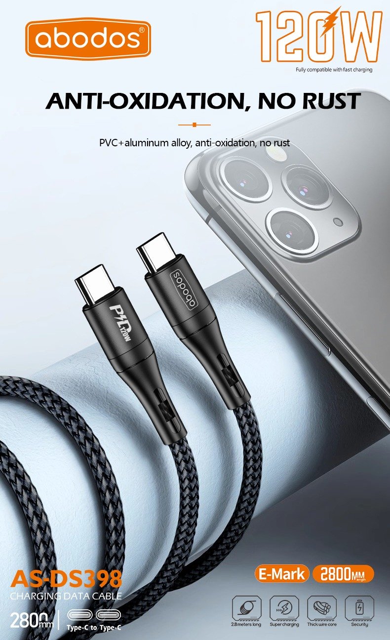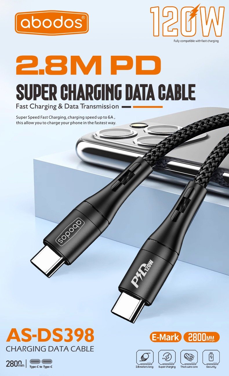 كيبل شحن سريع تايب سي 2.8 متر DS398